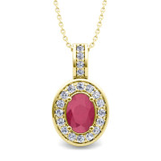 Diamond and Ruby Cluster Necklace in 18k Gold 7x5mm