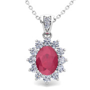 Diamond and Ruby Necklace in 14k Gold Halo Pendant 8x6mm