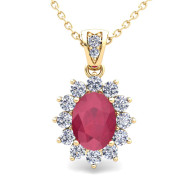 Diamond and Ruby Necklace in 18k Gold Halo Pendant 8x6mm