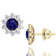 Sapphire and Diamond Halo Earrings in 18k Gold Studs, 5mm