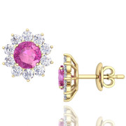 Pink Sapphire and Diamond Halo Earrings in 18k Gold Studs, 5mm