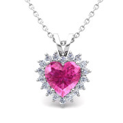 Heart Pink Sapphire and Diamond Necklace in 14k Gold Pendant