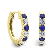7 Stone Sapphire and Diamond Hoop Earrings in 18k Gold Hoops