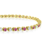 Diamond and Pink Sapphire Bracelet in 18k White Gold (G, SI1, 4.25 cttw) 7 inches