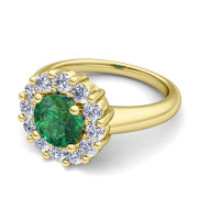 Emerald and Halo Diamond Engagement Ring in 18k Gold, 7mm