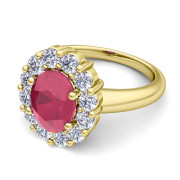 Halo Diamond and Ruby Diana Ring in 18k Gold, 9x7mm