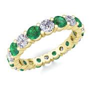 Diamond and Emerald Eternity Ring Band in 18k Gold