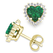 Diamond and Emerald Earrings in 18k Gold Heart Earring Studs, 5x5mm