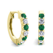 7 Stone Emerald and Diamond Hoop Earrings in 18k Gold Hoops