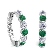Prong Set Emerald and Diamond Floating Hoop Earrings in 14k Gold Hoops