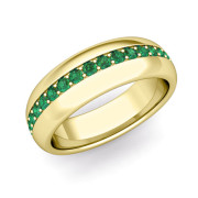 Pave Set Comfort Fit Emerald Wedding Band Ring in 18k Gold, 5.5mm