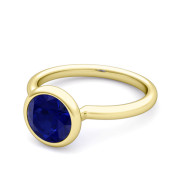 Bezel Set Solitaire Blue Sapphire Ring in 18k Gold, 6mm