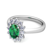 Brilliant Diamond and Emerald Diana Engagement Ring in 14k Gold, 8x6mm