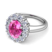Halo Diamond and Pink Sapphire Diana Ring in 14k Gold, 8x6mm
