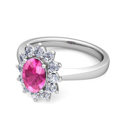 Brilliant Diamond and Pink Sapphire Diana Engagement Ring in 14k Gold, 8x6mm