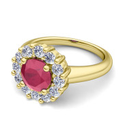 Ruby and Halo Diamond Engagement Ring in 18k Gold, 5mm