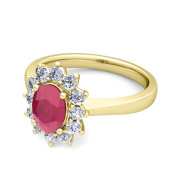 Brilliant Diamond and Ruby Diana Engagement Ring in 18k Gold, 8x6mm