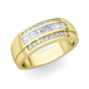 Princess Cut Diamond Mens Wedding Band in 18k Gold, 8mm