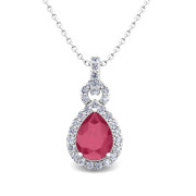 Pear Ruby and Pave Diamond Necklace in 14k Gold Drop Pendant
