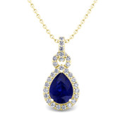 Pear Sapphire and Pave Diamond Necklace in 18k Gold Drop Pendant