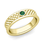 Solitaire Emerald Anniversary Ring in 18k Gold Diamond Cut Wedding Band, 5.5mm