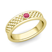 Solitaire Ruby Anniversary Ring in 18k Gold Diamond Cut Wedding Band, 5.5mm
