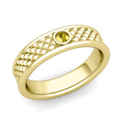 Solitaire Yellow Sapphire Anniversary Ring in 18k Gold Diamond Cut Wedding Band, 5.5mm
