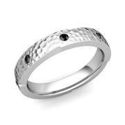 Flat Black Diamond Wedding Anniversary Ring in 14k Gold Hammered Ring, 5mm