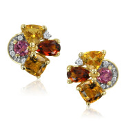 Flora Diamond, Citrine and Pink Tourmaline Earrings in 14k Yellow Gold