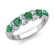 Garland Diamond and Emerald Wedding Ring in 14k Gold