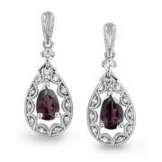White Sapphire and Garnet Earrings in 10k White Gold Filigree Earrings Settings