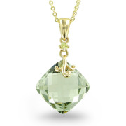 Natural Green Amethyst and Peridot Necklace in 10k Yellow Gold, 5.98 cttw