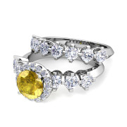 Bridal Set of Crown Set Diamond and Yellow Sapphire Engagement Wedding Ring in 14k Gold, 6mm
