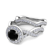 Infinity Black and White Diamond Engagement Ring Bridal Set in Platinum, 7mm