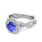 Infinity Diamond and Ceylon Sapphire Halo Engagement Ring in Platinum, 6mm