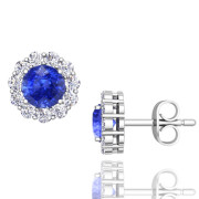 Halo Diamond and Ceylon Sapphire Earrings in 14k Gold Studs, 5mm