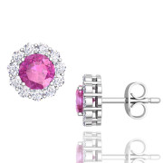 Halo Diamond and Pink Sapphire Earrings in 14k Gold Studs, 5mm