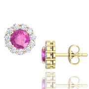 Halo Diamond and Pink Sapphire Earrings in 18k Gold Studs, 5mm