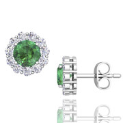 Halo Diamond and Emerald Earrings in 14k Gold Studs, 5mm