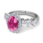 Crown Set Diamond and Pink Sapphire Engagement Ring in 14k Gold, 9x7mm