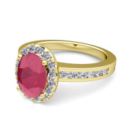 Diamond and Ruby Halo Engagement Ring in 18k Gold Channel Set Ring, 9x7mm