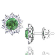 Emerald and Diamond Halo Earrings in 14k Gold Studs, 5mm