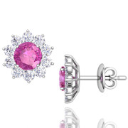 Pink Sapphire and Diamond Halo Earrings in 14k Gold Studs, 5mm