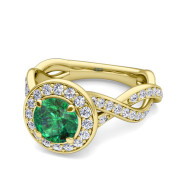 Infinity Diamond and Emerald Halo Engagement Ring in 18k Gold, 6mm