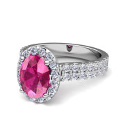 Two Row Diamond and Pink Sapphire Engagement Ring in 14k Gold, 9x7mm
