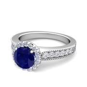 Milgrain Diamond and Sapphire Halo Engagement Ring in Platinum, 6mm