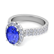 Two Row Diamond and Ceylon Sapphire Engagement Ring in 14k Gold, 9x7mm