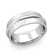 Ridged Wedding Band in 14k Gold Hammered Finish Comfort Fit Band, 8mm