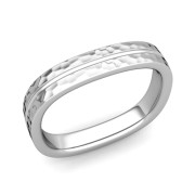 Square Wedding Ring in 14k Gold Hammered Finish Comfort Fit Wedding Band, 4mm
