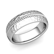 Cable Comfort Fit Wedding Band Ring in 14k Gold, Hammered Finish, 7mm